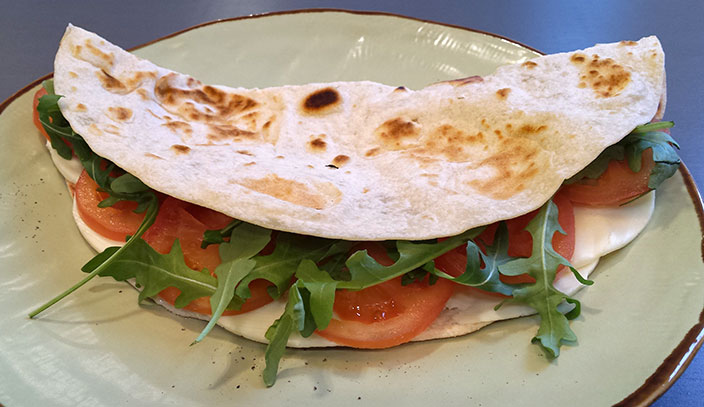 Keine Pizza! Die moderne, offene Version der klassischen Piadina, das Fladenbrot aus der Romagna.