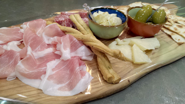 Antipasto Classico San Daniele Schinken, italienische Jäger-Salami, Parmesankäse, Oliven aus Apulien